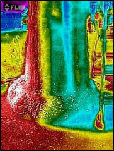 The sculpture was initially documented thermographically in an attempt to observe any cracks and fissures in the structure that may not be obvious to the naked eye, as well as any potential internal structures. Unfortunately, this analysis did not provide us with any significant information.