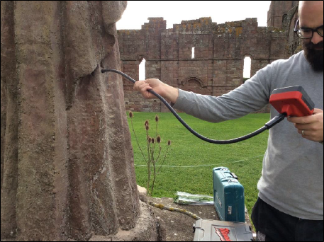 - Structurally stabilize areas where necessary by way of drilling and pinning / setting in dog cramps. Areas will be pinned/cramped using stainless steel dowel (grade 316) set in position with polyester resin. The new fixings would then be covered with pigmented St One repair mortar or pigmented Paraloid B72 (12% w/v in acetone) mixed with sand dependant on depth of fill.